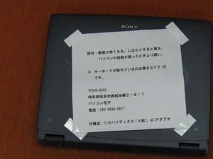 到着後、中身の確認をお願い致します。お預けいただきましたパソコンと付属物、保証書があるかご確認下さい。